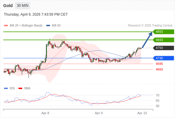 在 4730 之上,看涨,目标价位为 4843 ,然后为 4893 。