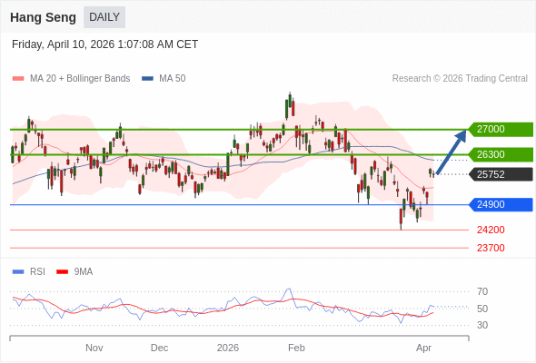 恒生指数 短线: 目标位为26300。