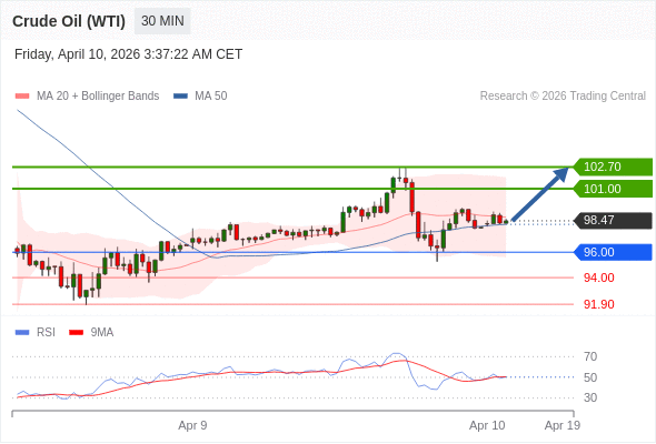 在 96.00 之上,看涨,目标价位为 101.00 ,然后为 102.70 。