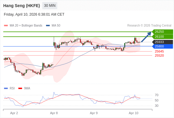在 25800 之上,看涨,目标价位为 26100 ,然后为 26250 。