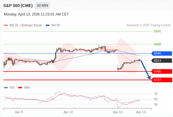 在 6846 之下,看跌,目标价位为 6765 ,然后为 6727 。