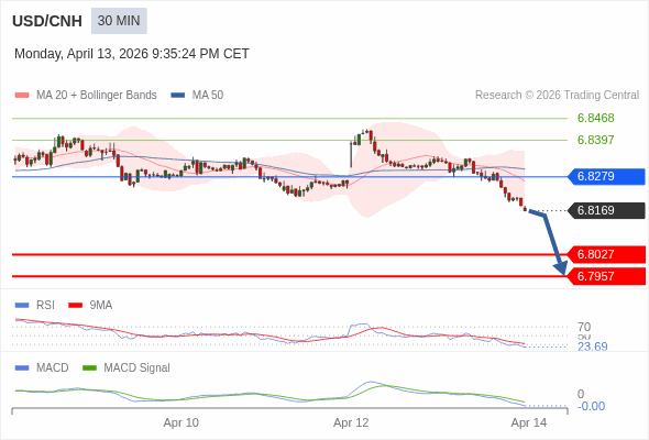 技术点评: RSI技术指标小于30。在这种情况下,说明有很强的下跌趋势,或者意味着处在超卖的状态下,可能会有向上的反弹。我们将观察RSI技术指标是否出现背离现象。 MACD技术指标处在其信号线之下看空。 配置为负。 此外,价位低于其20天及50天移动平均线 ( 分别位于6.8265 和6.8304 )。