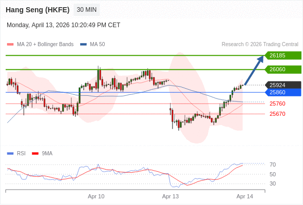 在 25860 之上,看涨,目标价位为 26060 ,然后为 26185 。