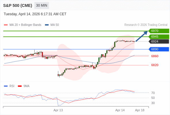 在 6890 之上,看涨,目标价位为 6945 ,然后为 6970 。