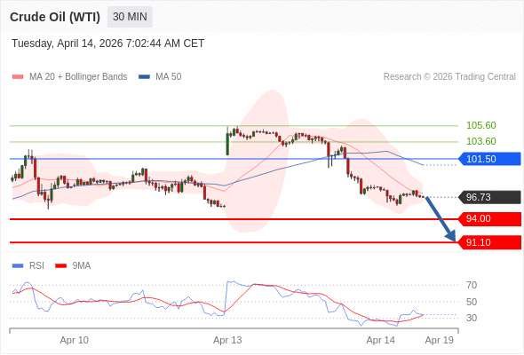 在 101.50 之下,看跌,目标价位为 94.00 ,然后为 91.10 。