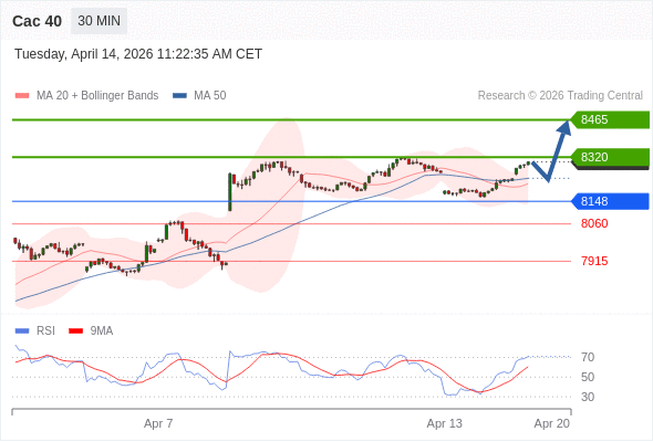 Cac 40 当日内: 新一轮上升。