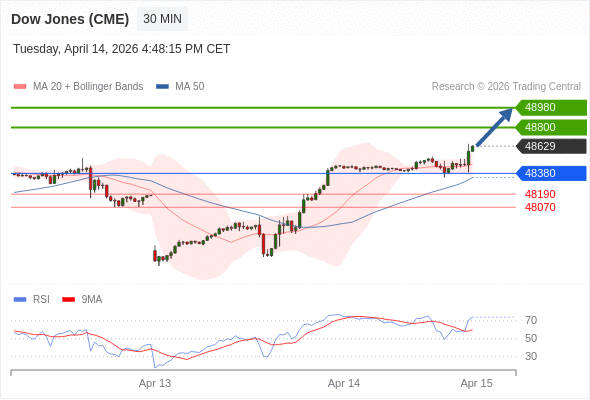 在 48380 之上,看涨,目标价位为 48800 ,然后为 48980 。