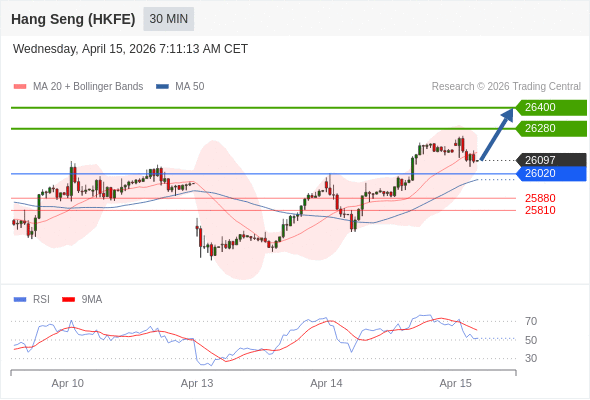 在 26020 之上,看涨,目标价位为 26280 ,然后为 26400 。