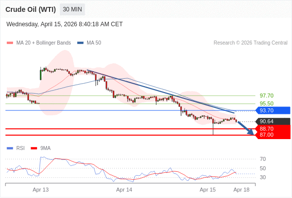 交易策略: 在 93.70 之下,看跌,目标价位为 88.70 ,然后为 87.00 。
