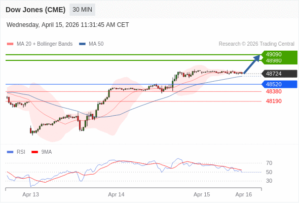 在 48520 之上,看涨,目标价位为 48980 ,然后为 49090 。