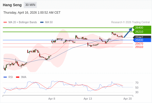 在 25830 之上,看涨,目标价位为 26210 ,然后为 26400 。