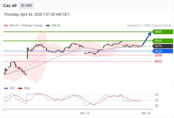 Cac 40 当日内: 上升趋势。