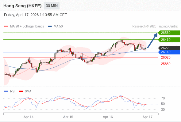 在 26140 之上,看涨,目标价位为 26410 ,然后为 26560 。