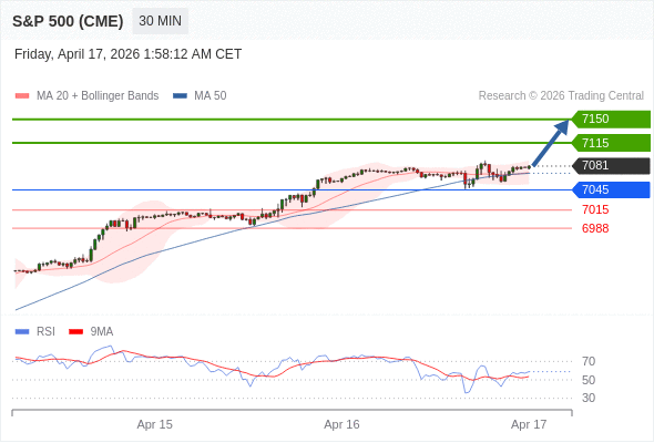 在 7045 之上,看涨,目标价位为 7115 ,然后为 7150 。