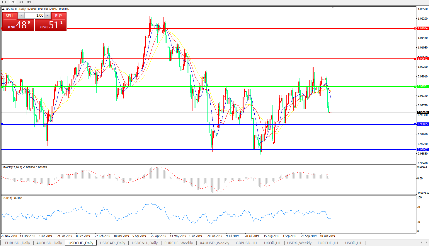 交易策略:0.9950下方看跌,目标0.9800、0.9700