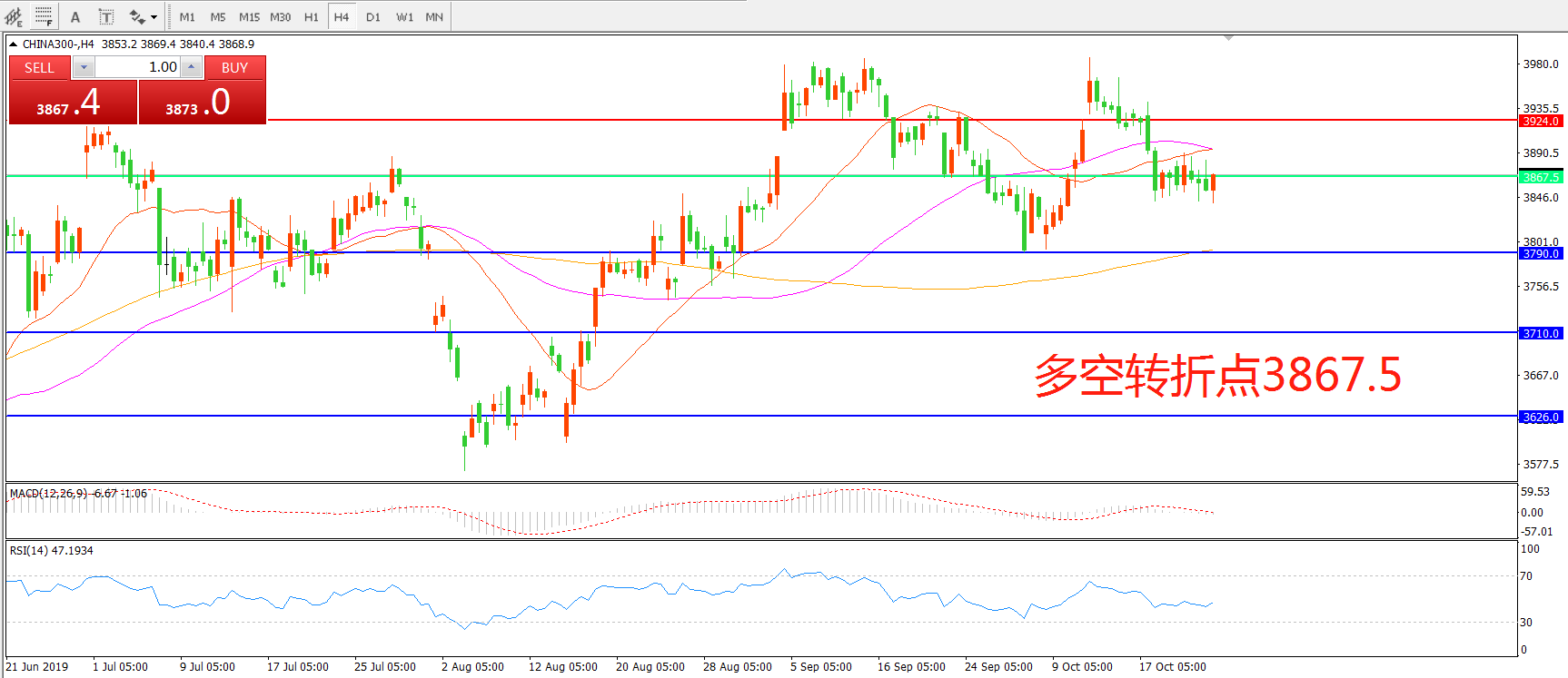 多空转折点:3867.50