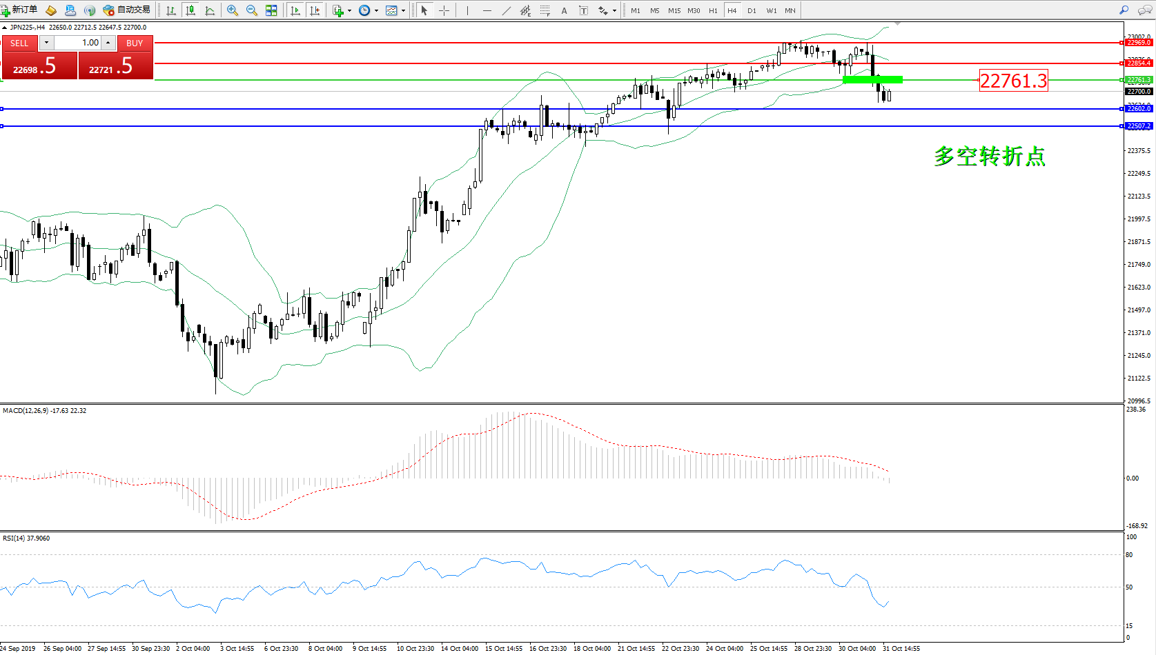 日经225指数10月31日(周四)收盘上涨96.38点,涨幅0.42%,报22939.50点。日本央行维持基准利率为-0.1%不变。调整了前瞻性指引,释放未来降息可能性的更明确信号。在指引中删除了(利率)时间表。央行以7:2的投票比例通过收益率曲线控制政策,委员片冈刚士和原田泰反对。日本央行下调2019至2021三个财年GDP增长预期。 央行暗示降息的可能性。全线下调2019~2021三个财年GDP增长与核心通胀预期。日本央行委员片冈刚士:前瞻性指引应该明确与2%的通胀目标相关。海外经济体的下行风险似乎在增加。金融系统稳定性风险现在不大,金融机构有充足资本基础。