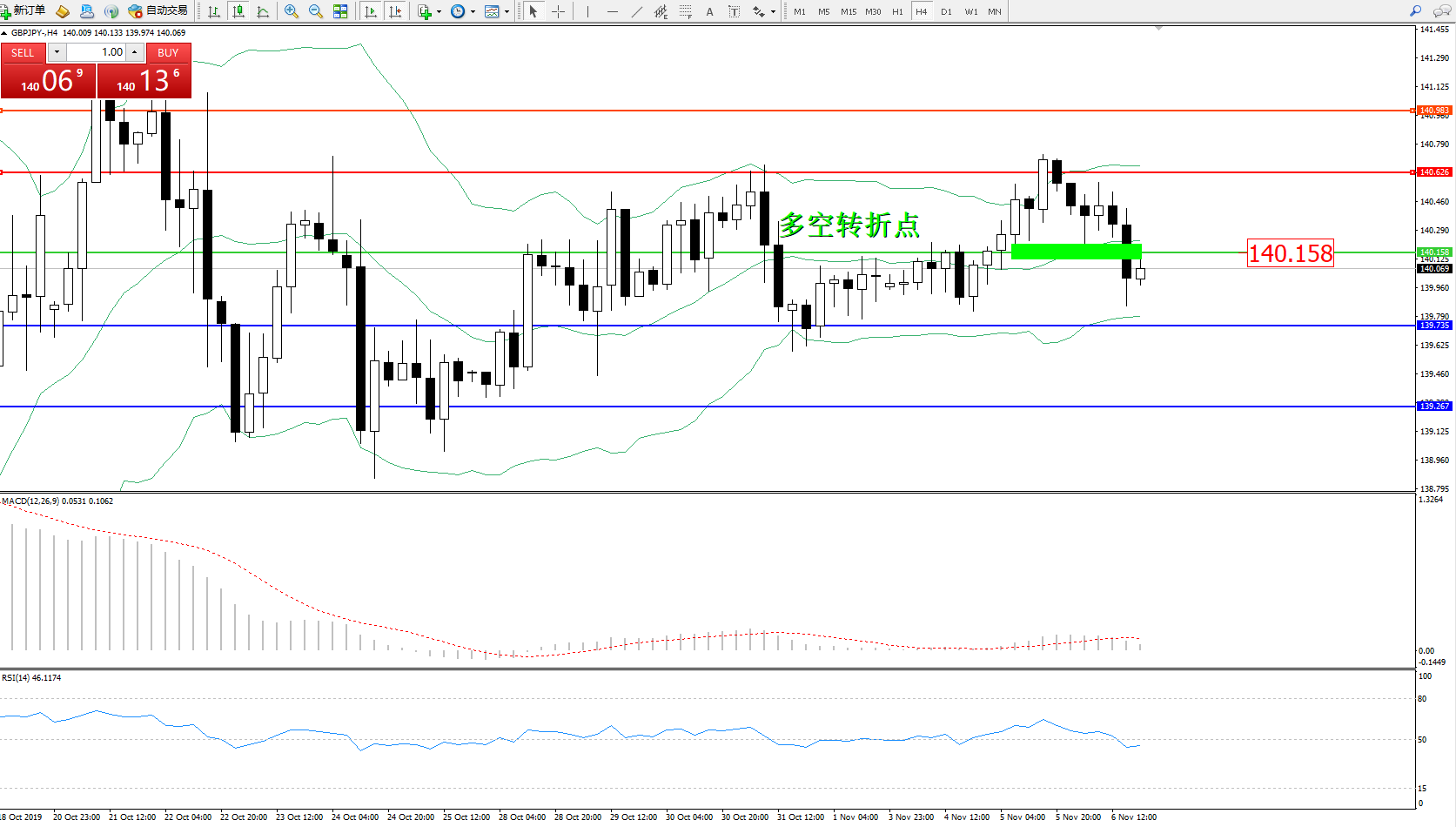 交易策略:140.158下方看跌,目标139.735、139.267
