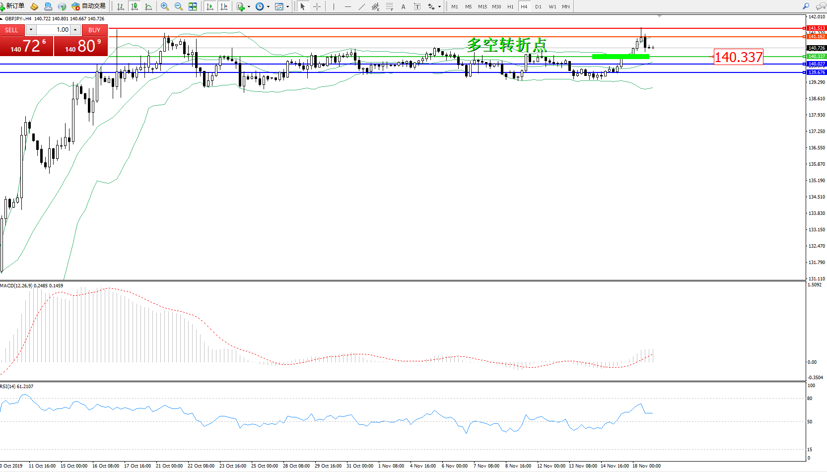 交易策略:140.337上方看涨,目标141.162141.513
