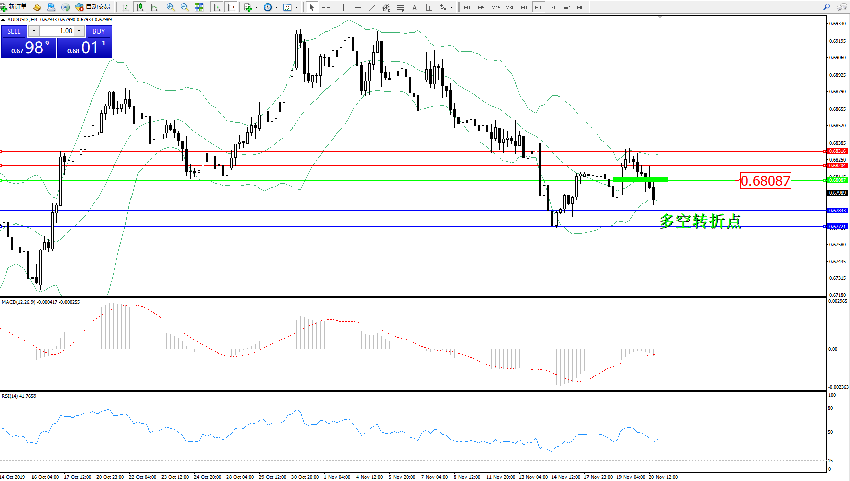 交易策略:0.68087下方看跌,目标0.67843、0.67721