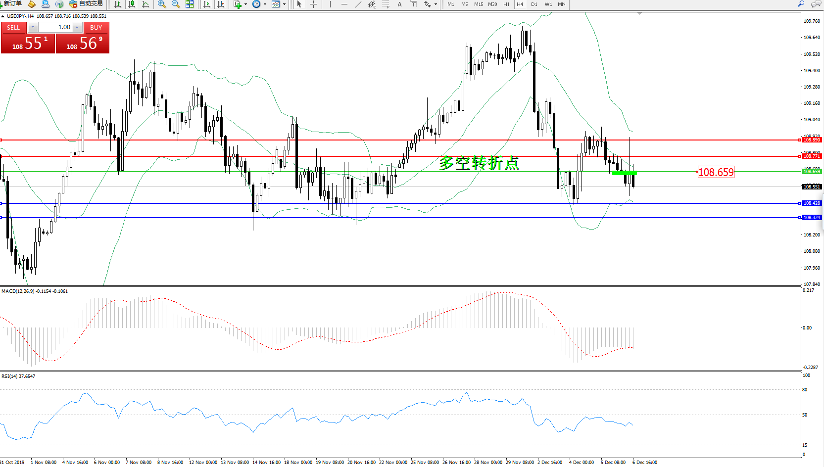 技术点评:空头下行延续布林带指标中轨下方若是以下探,前期低位破位在即,布林带指标呈收口向下移动中,且有进一步下行态势,MACD指标空头区域维持低位横盘整理中,RSI指标处于空头区域弱势徘徊向下移动中;