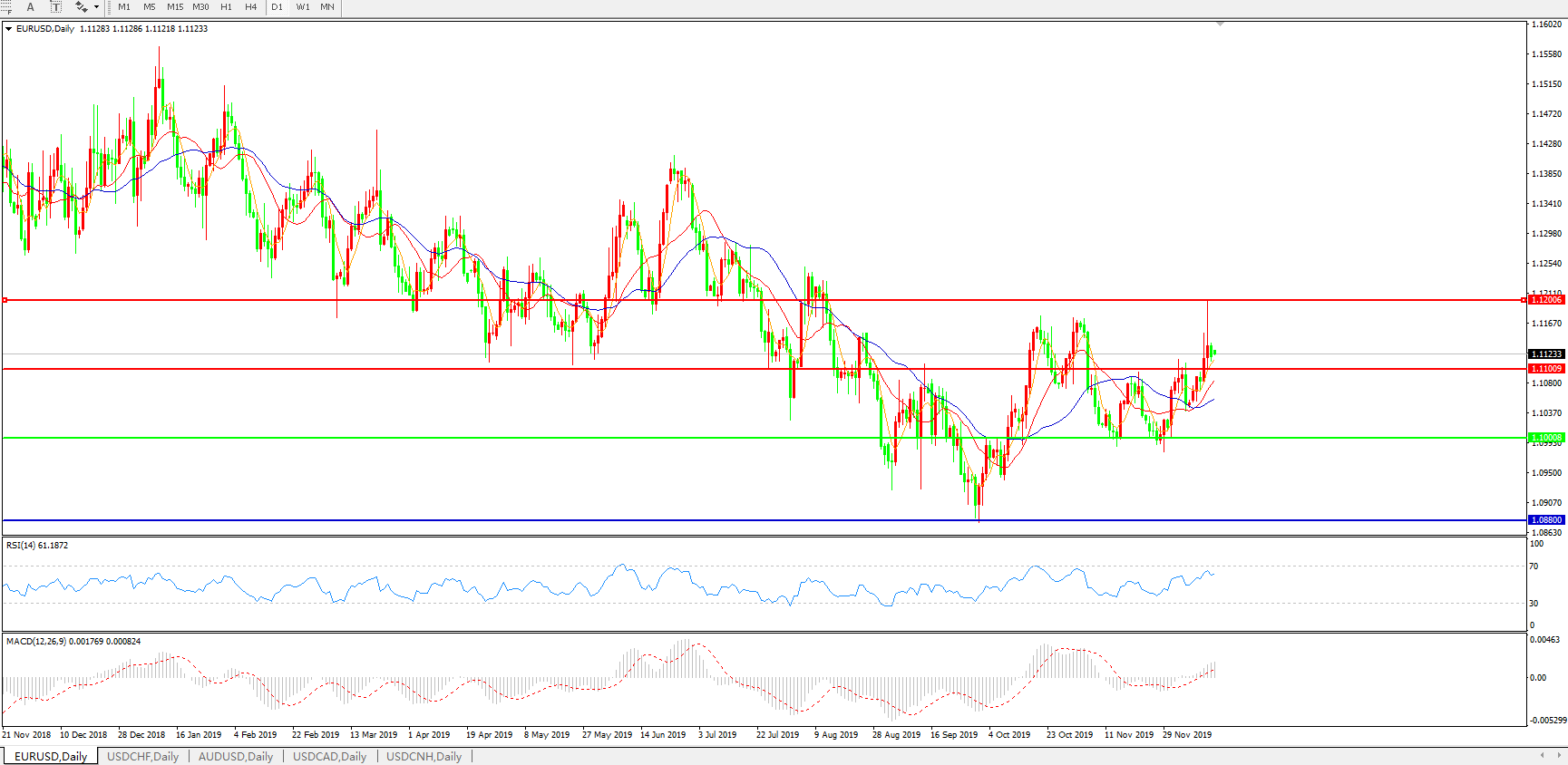 欧元兑美元EURUSD 日线图:
