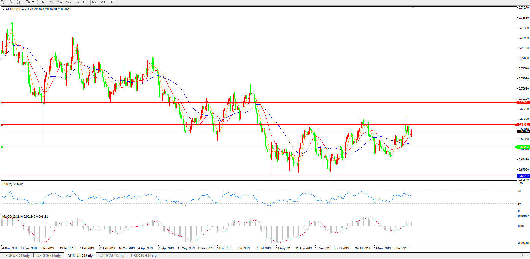 交易策略:0.6800上方看涨,目标0.6900、0.7000