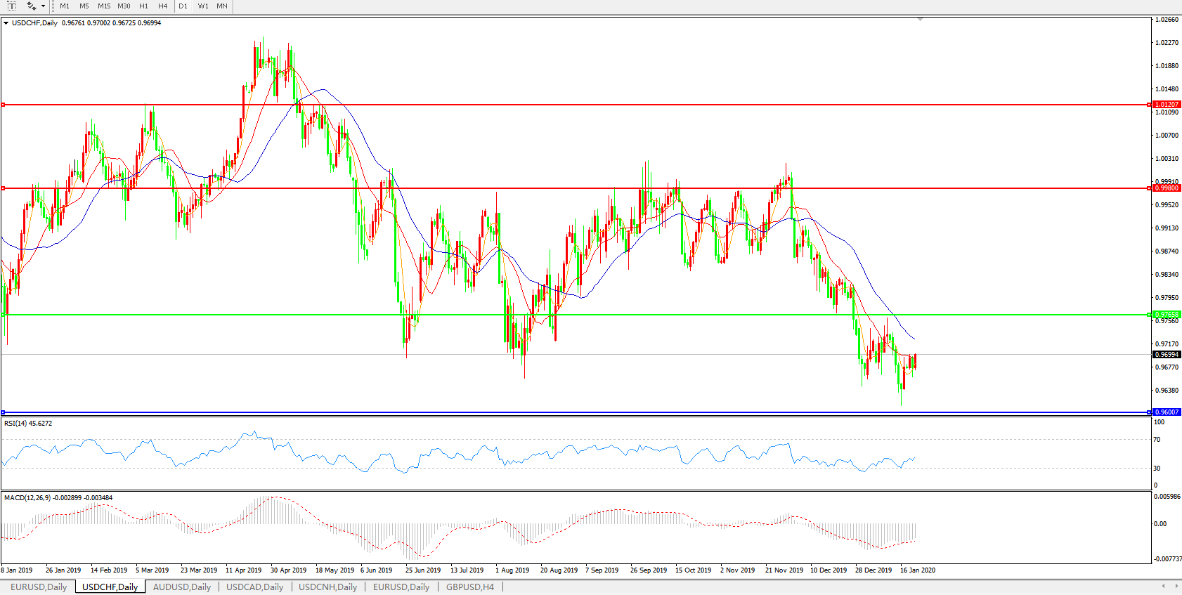 美元兑瑞郎USDCHF 日线图: