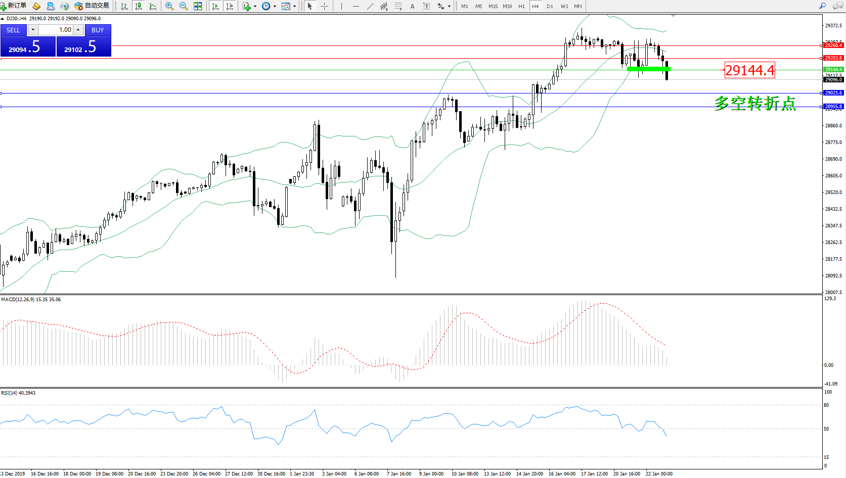 技术点评:高位震荡走势逐渐开始走弱下行,正破位布林带指标下轨有继续下移态势,且布林带指标有张口迹象,MACD指标处于多头区域高位震荡下移至0轴线附近徘徊,RSI指标处于50均衡线附近弱势震荡持续下探中;