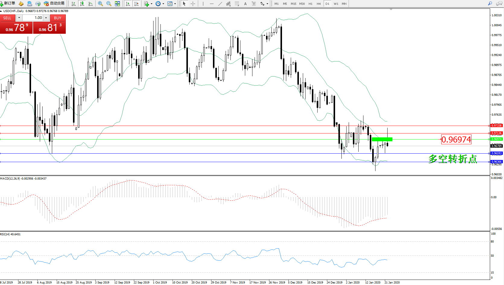 备选策略:0.96974上方看涨,目标0.97136、0.97338