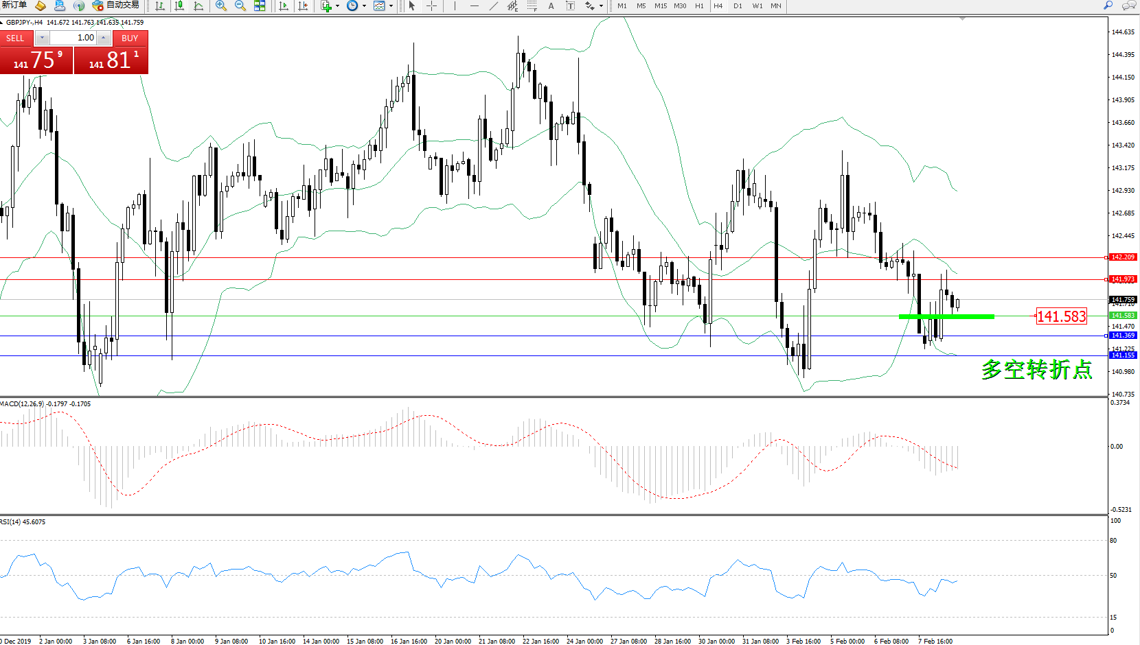 交易策略:141.583上方看涨,目标141.973、142.209