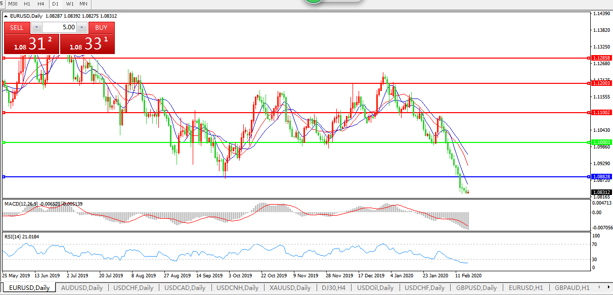 交易策略:1.1000下方看跌,目标1.0880、1.0800、1.0500