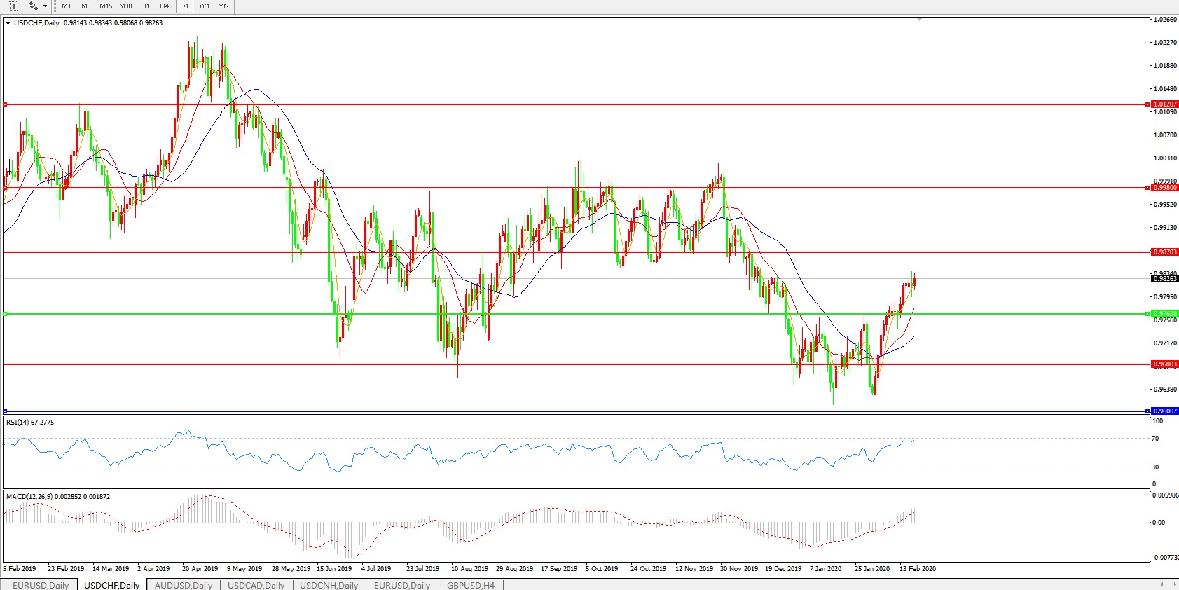 美元兑瑞郎USDCHF 日线图: