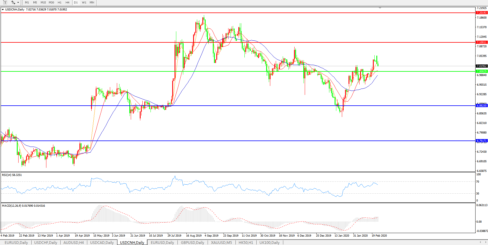 美元兑人民币USDCNH 日线图: