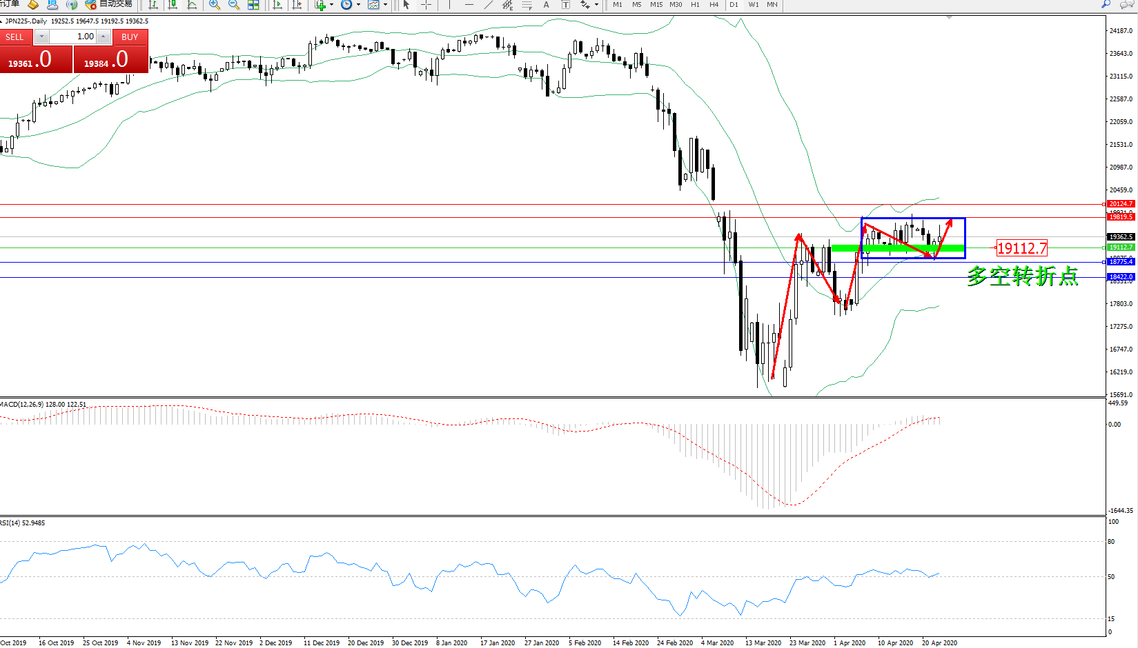 日经225指数423日(周四)收盘上涨274.05点,涨幅1.43%,报19412.00点。日本央行开始探讨采取增加公司债和商业票据购买额度的加码宽松措施,以支援企业因新型冠状病毒疫情扩大而恶化的资金周转。此事将在27日的货币政策会议上展开讨论。一旦实施,将是央行继3月会议之后连续第二次加码量化宽松。央行当天宣布,原定2728日举行的货币政策会议日程缩短为1天,从27日上午9点开始,大约在中午结束。日本政府称,日本经济“迅速恶化”,形势“极其严峻”,这是11年来最悲观的评估,下调对消费和产出、就业和企业收入的评估。