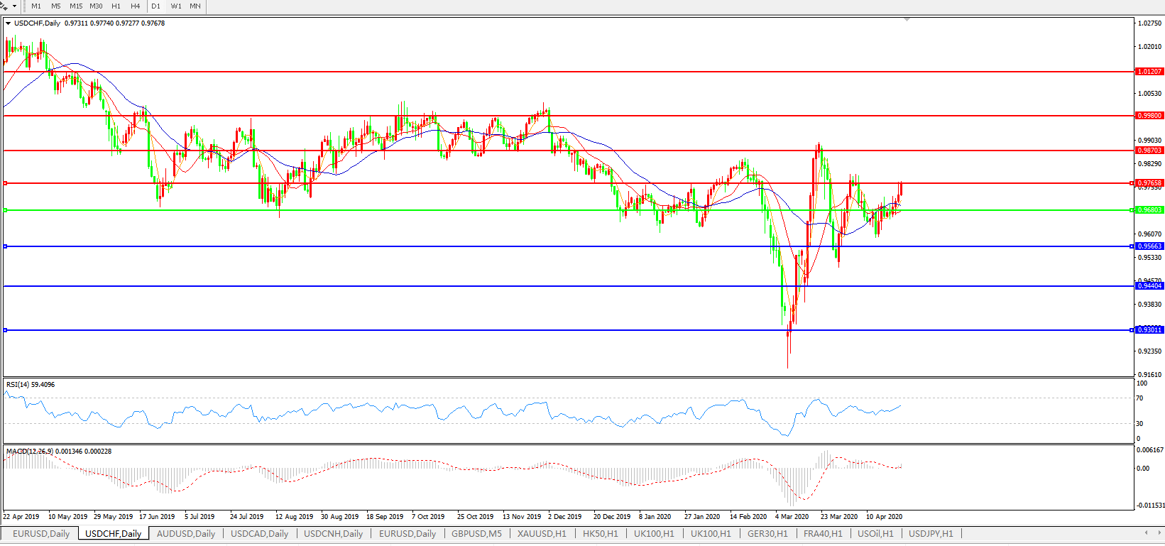 交易策略:0.9680上方看涨,目标0.9765、0.9870