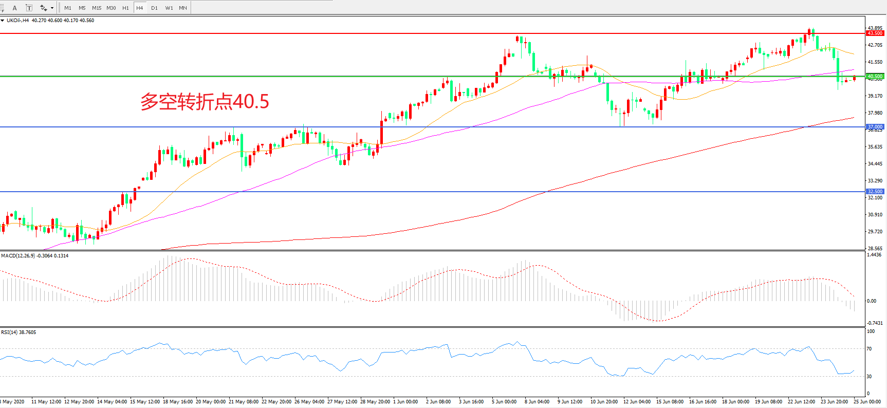 交易策略:  在40.50之下看跌,目标37.00      32.50