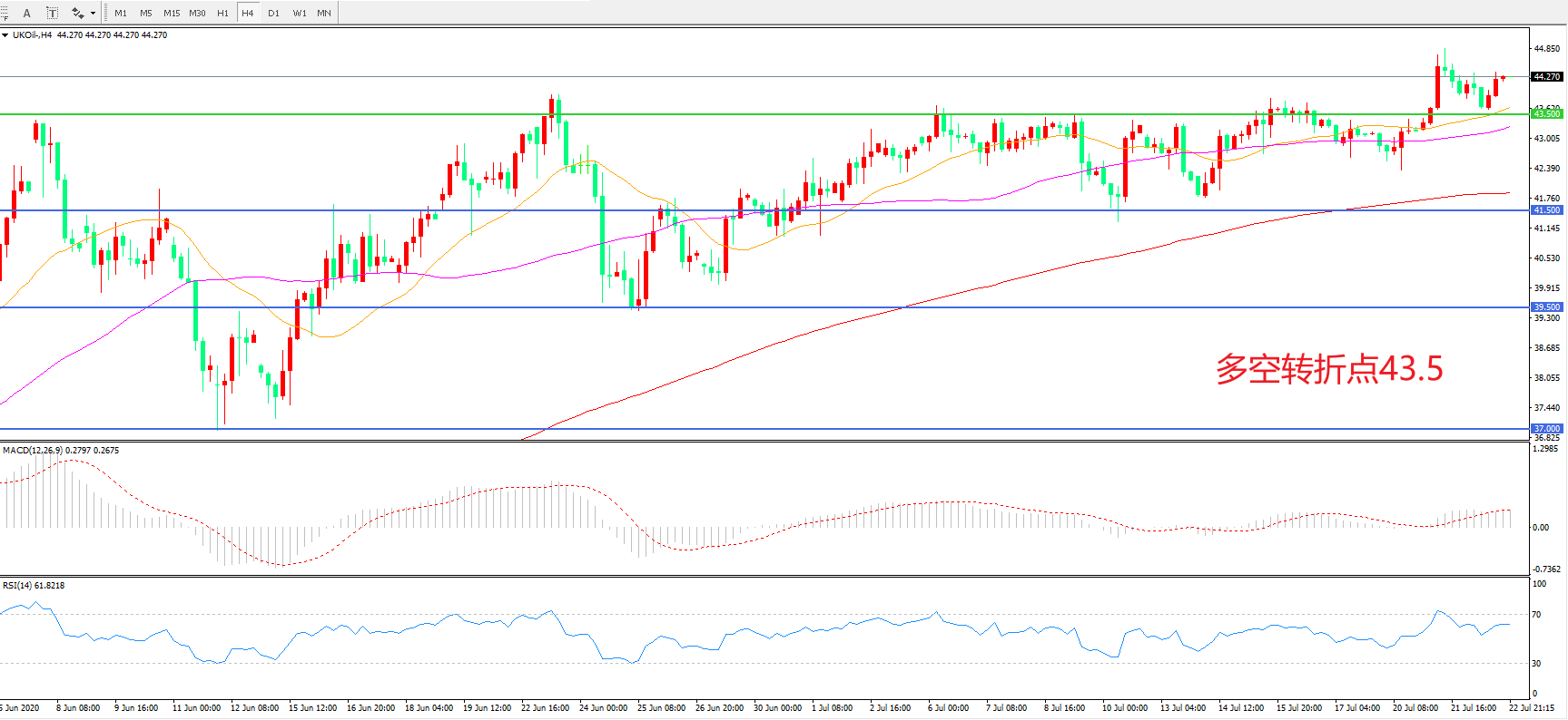 交易策略:  在43.50之上看涨,目标47.00      50.00
