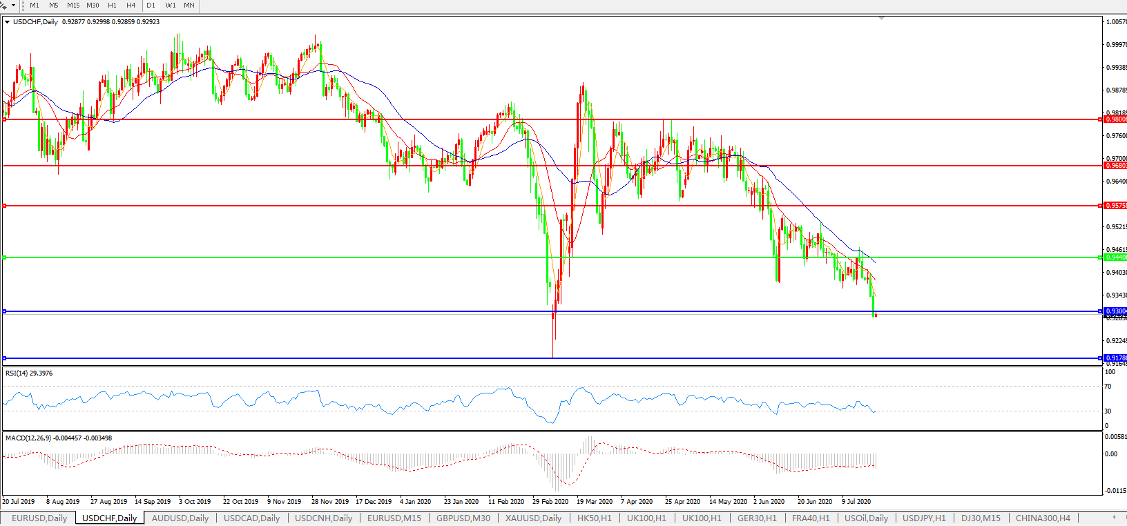 美元兑瑞郎USDCHF 日线图: