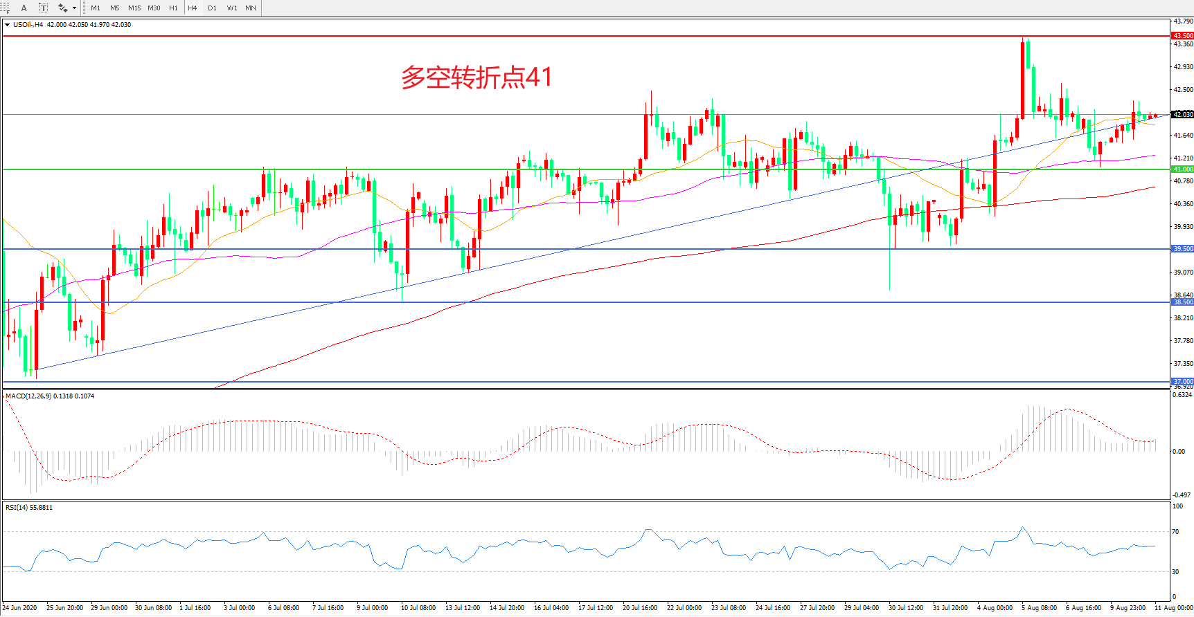 交易策略:在41.00之上看涨,目标43.50         46.00