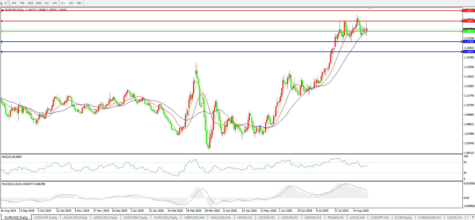 交易策略:1.1800下方看跌,目标1.1700、1.1600