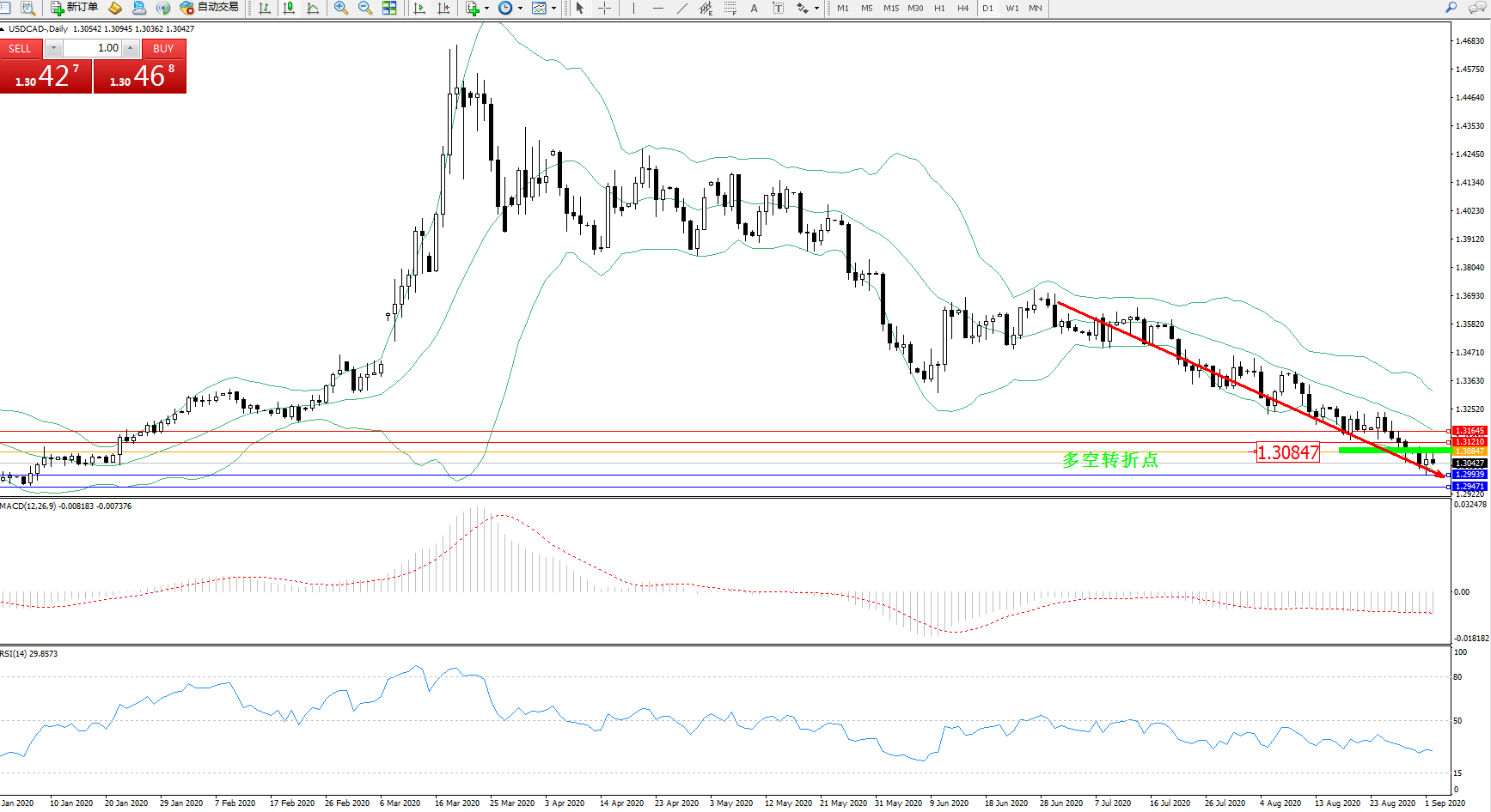 美元兑加元弱势下移至1.30462附近,油市处于供需平衡状态,俄罗斯2020年原油产出预计将下降约10%至5.1亿吨,全球石油需求预计将在明年恢复至疫情前水平,目前全球石油需求已经恢复到危机前水平的90%,俄罗斯将建议欧佩克+对全球石油需求复苏做出反应。华侨银行经济学家Howie Lee表示,布伦特原油在46美元/桶附近,但预计到2020年底将触及50美元/桶,飓风在很大程度上避开了德克萨斯州的关键港口和炼油厂,美国原油库存连续第五周下降,汽油隐含需求在新冠病毒感染前水平的2.5%以内,短期内油价可能继续盘整,此外仍看涨原油价格,到2020年底布伦特原油价格可能触及50美元/桶。