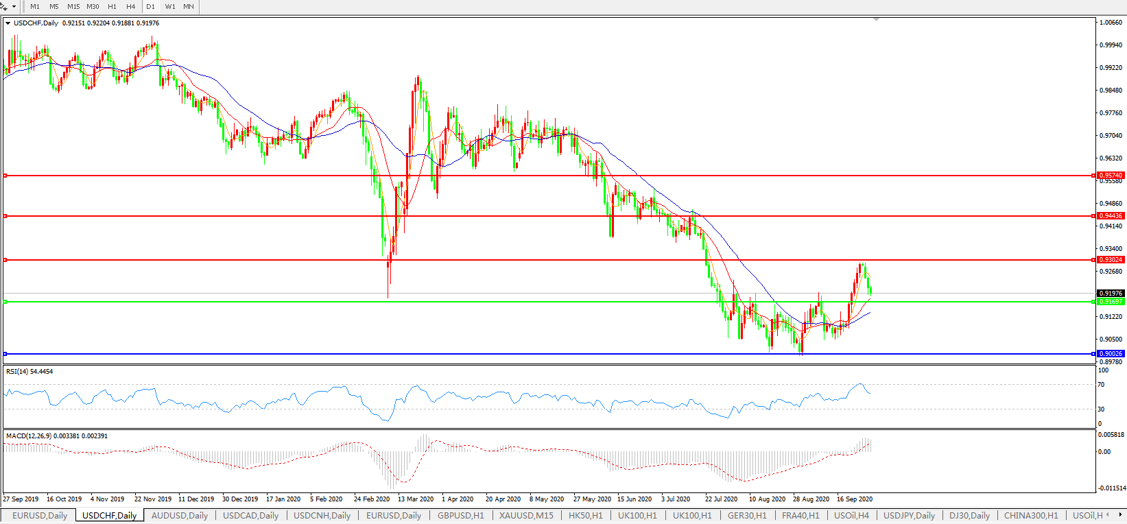 交易策略:0.9170上方看涨,目标0.9300、0.9440