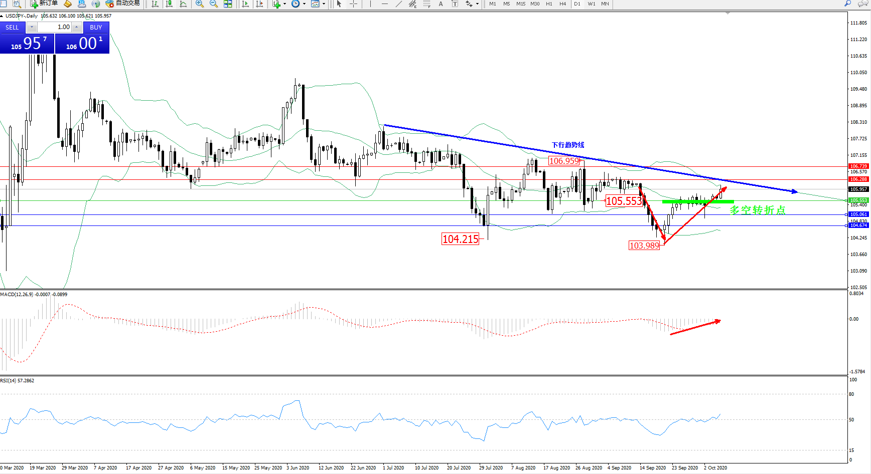 交易策略:105.553上方看涨,目标106.288、106.739
