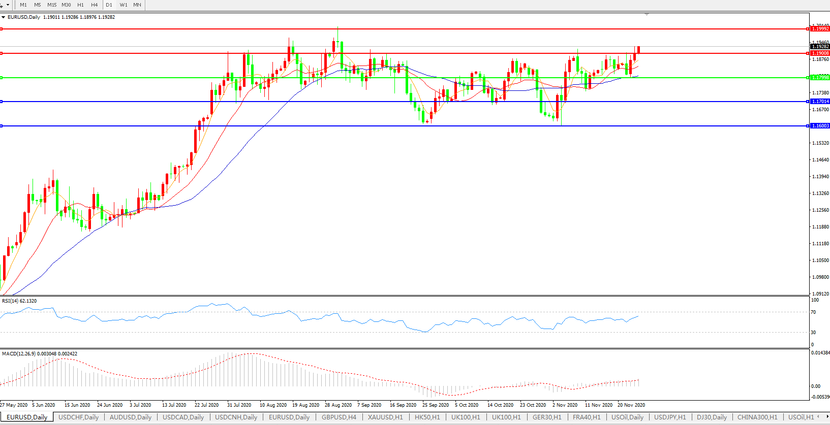 欧元兑美元EURUSD 日线图: