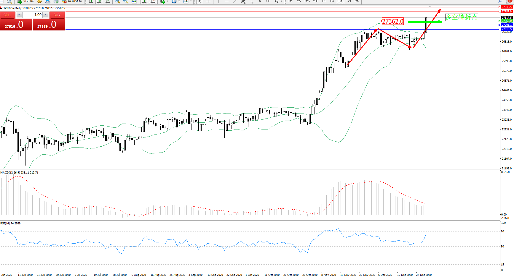日经225指数12月29日(周二)收盘上涨734.97点,涨幅2.74%,报27589.00点。日本股市日经指数周二收于逾30年高点,因投资者寄望美国扩大经济刺激规模,风险偏好改善。民主党占多数的美国众议院周一以275-134的投票结果通过了一项议案,满足了特朗普提出的向民众发放2000美元疫情纾困支票的要求,议案将送交共和党掌控的参议院,未来命运仍不得而知。投资人在重新确认本月的其他刺激因素,比如美国、欧洲和日本等主要央行的鸽派货币政策,以及有关疫苗的一系列利好消息。美元指数持续承压走低再度逼近90关口,资者也因此而对美国未来财政健康状况更加感到担忧,并担心美联储来年可能出台更激进的债务融资政策从而进一步损害美元的购买力,在此背景下,美元的颓势仍难以扭转;日本神奈川县新增395例新冠肺炎确诊病例。爱知县新增235例新冠肺炎确诊病例。