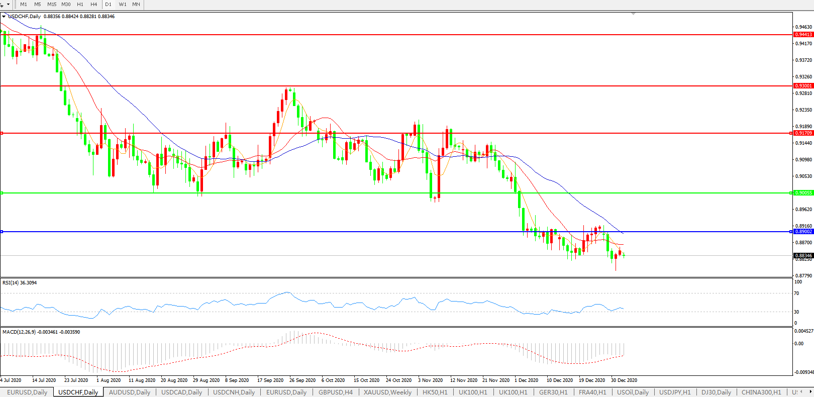 美元兑瑞郎USDCHF 日线图: