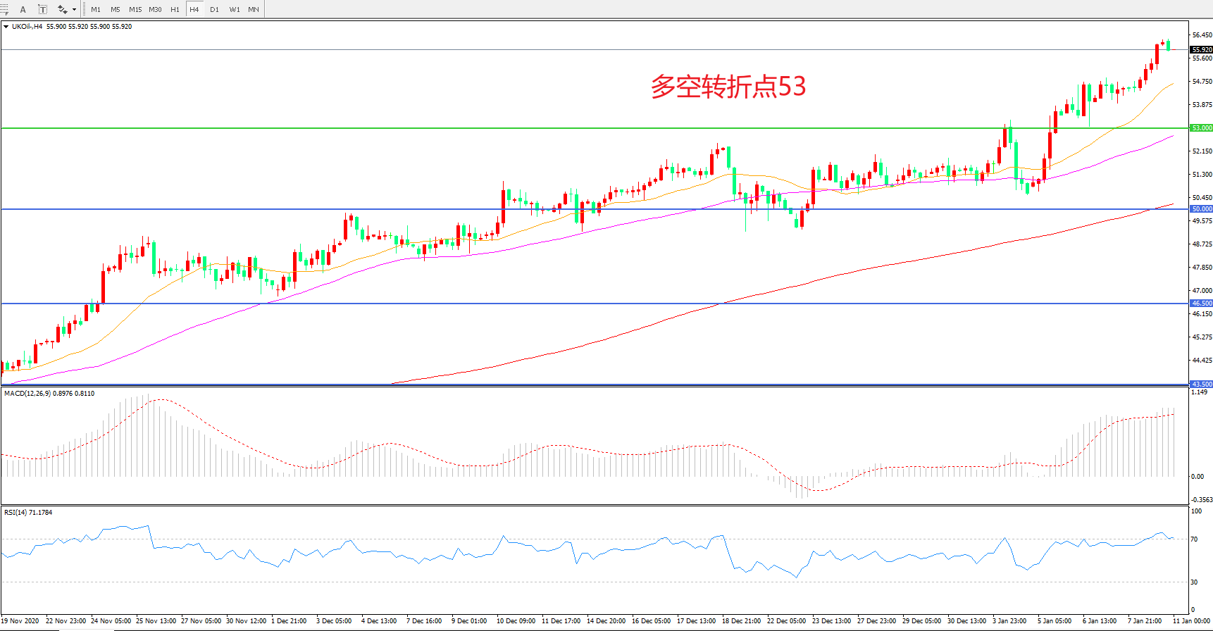 多空转折点:53.00