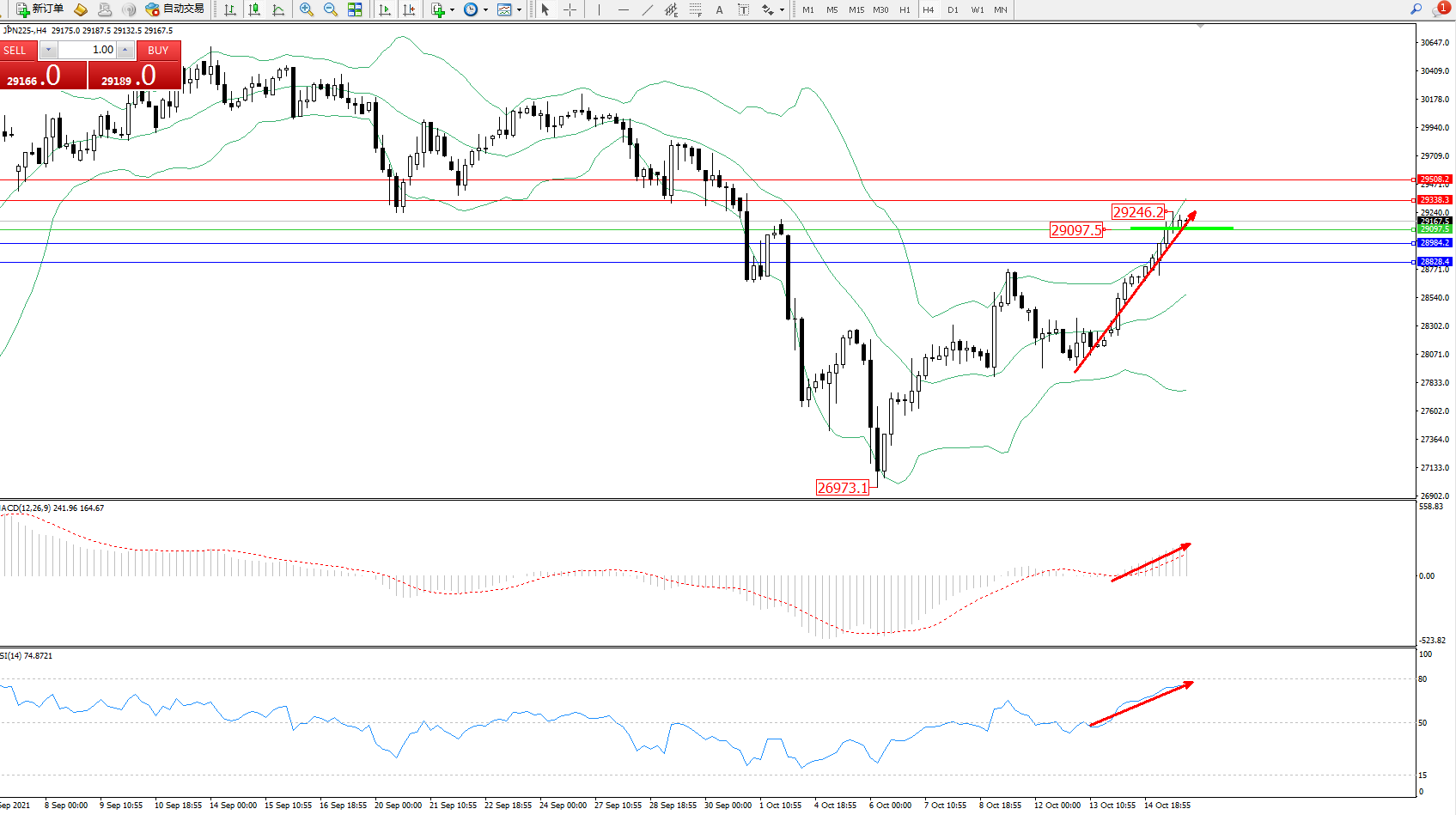 日经指数JPN225——4小时K线图显示: