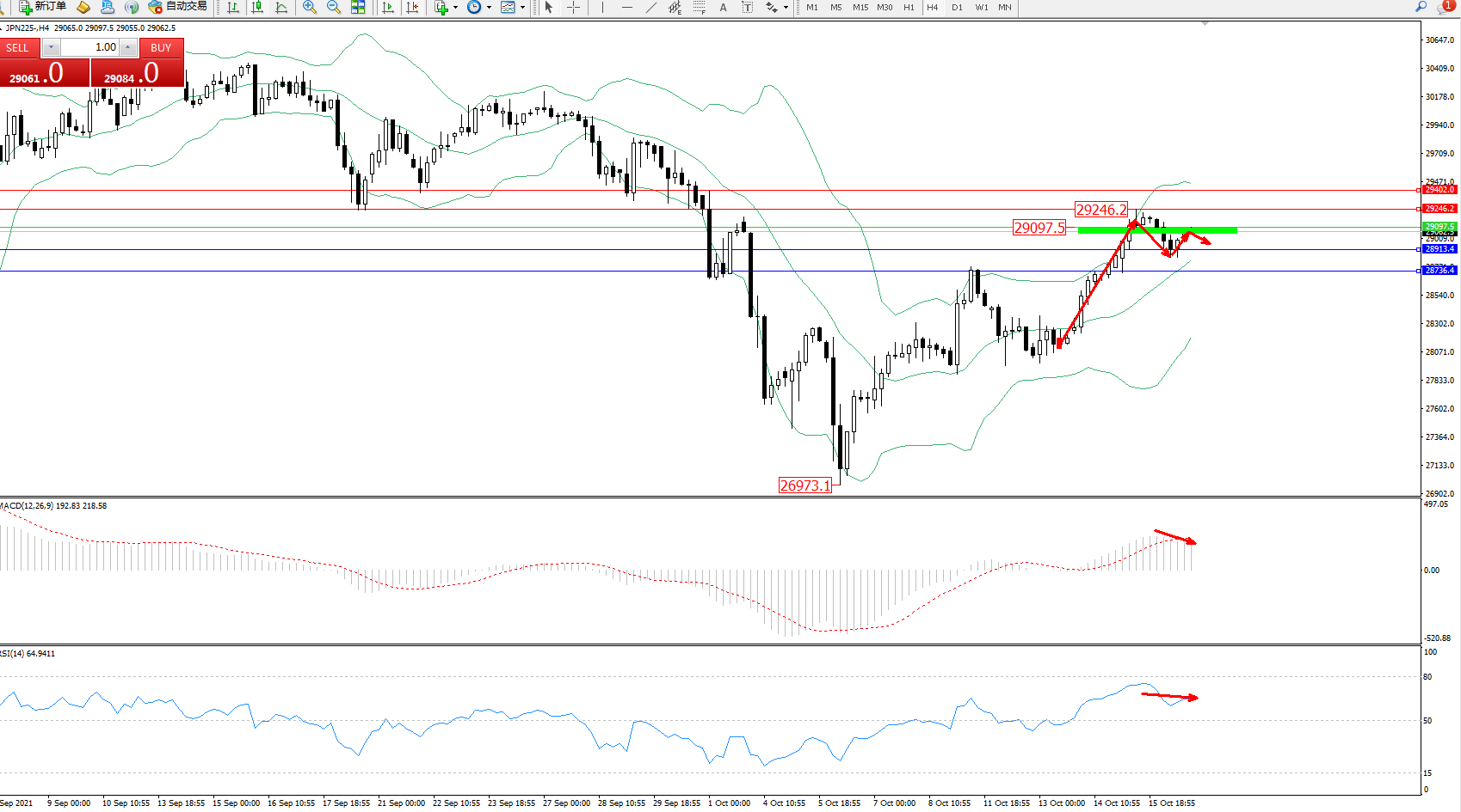 日经指数JPN225——4小时K线图显示: